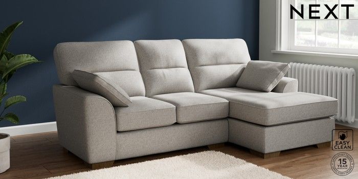 7.2.10 Stamford Highback Small Sofa Chaise - Right Hand Woven Chenille Easy Clean Light Grey Large Square Angle - Mid | Made Click here to use our website with more accessibility support, for example screen readers
