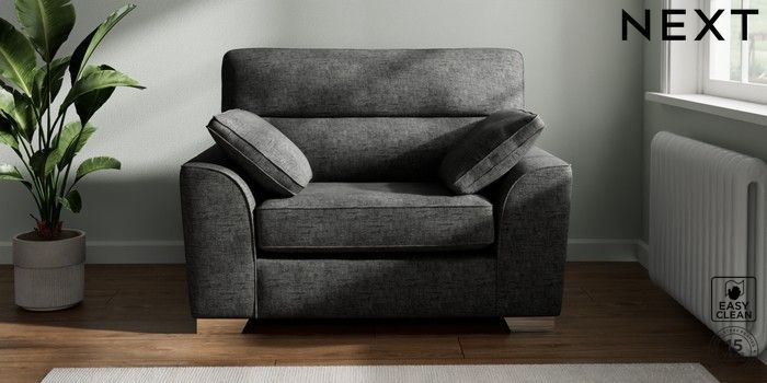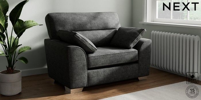 7.2.10 Stamford Highback Snuggle Boucle Weave Easy Clean Charcoal Grey Large Square Angle - Chrome Metal | Made Click here to use our website with more accessibility support, for example screen readers