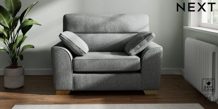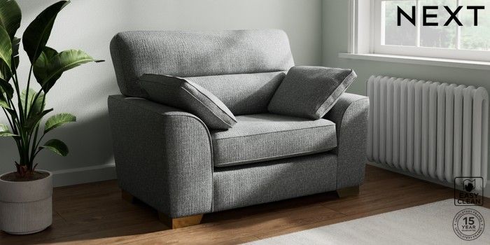 7.2.10 Stamford Highback Snuggle Chunky Boucle Easy Clean Mid Grey Large Square Angle - Brushed Brass | Made Click here to use our website with more accessibility support, for example screen readers