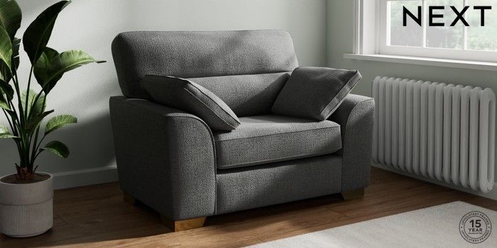 7.2.10 Stamford Highback Snuggle Chunky Texture Dark Grey Large Square Angle - Brushed Brass | Made Click here to use our website with more accessibility support, for example screen readers