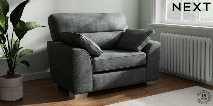 7.2.10 Stamford Highback Snuggle Cotswold Chenille Dark Grey Large Square Angle - Chrome Metal | Made Click here to use our website with more accessibility support, for example screen readers