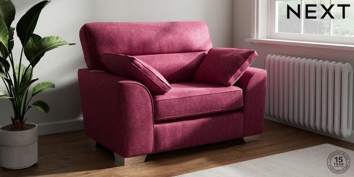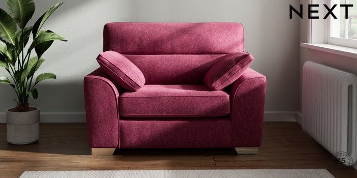 7.2.10 Stamford Highback Snuggle Cotswold Chenille Dark Raspberry Pink Large Square Angle - Chrome Metal | Made Click here to use our website with more accessibility support, for example screen readers