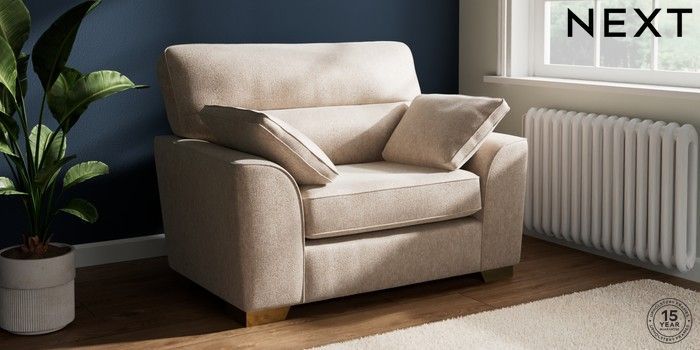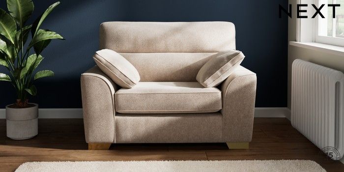 7.2.10 Stamford Highback Snuggle Cotswold Chenille Light Natural Large Square Angle - Brushed Brass | Made Click here to use our website with more accessibility support, for example screen readers