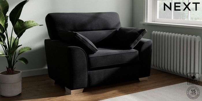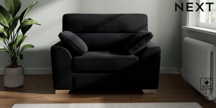7.2.10 Stamford Highback Snuggle Fine Chenille Easy Clean Black Large Square Angle - Chrome Metal | Made Click here to use our website with more accessibility support, for example screen readers