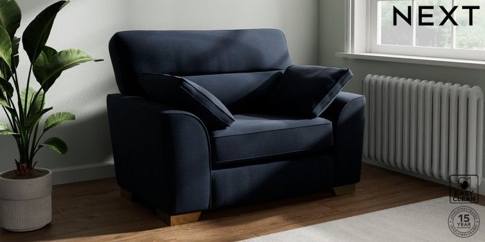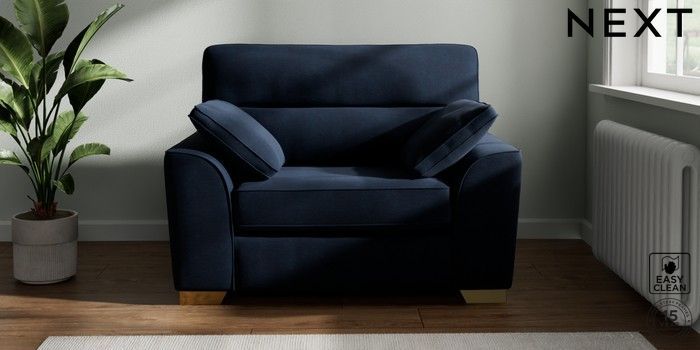 7.2.10 Stamford Highback Snuggle Fine Chenille Easy Clean Dark Navy Blue Large Square Angle - Brushed Brass | Made Click here to use our website with more accessibility support, for example screen readers