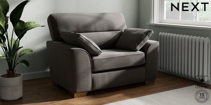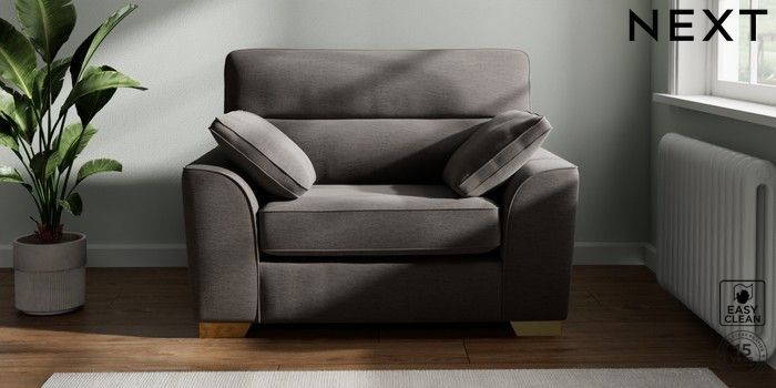 7.2.10 Stamford Highback Snuggle Fine Chenille Easy Clean Dark Smoke Grey Large Square Angle - Brushed Brass | Made Click here to use our website with more accessibility support, for example screen readers