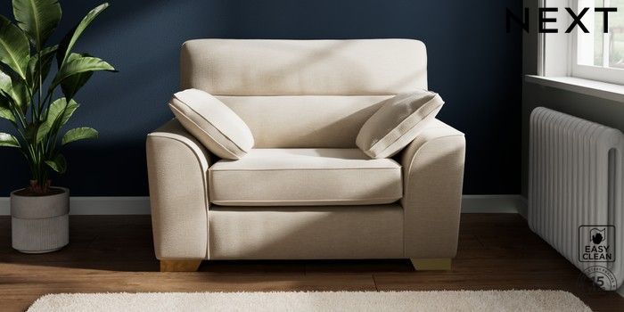 7.2.10 Stamford Highback Snuggle Fine Chenille Easy Clean Oyster Large Square Angle - Brushed Brass | Made Click here to use our website with more accessibility support, for example screen readers