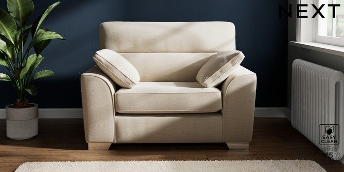 7.2.10 Stamford Highback Snuggle Fine Chenille Easy Clean Oyster Large Square Angle - Chrome Metal | Made Click here to use our website with more accessibility support, for example screen readers