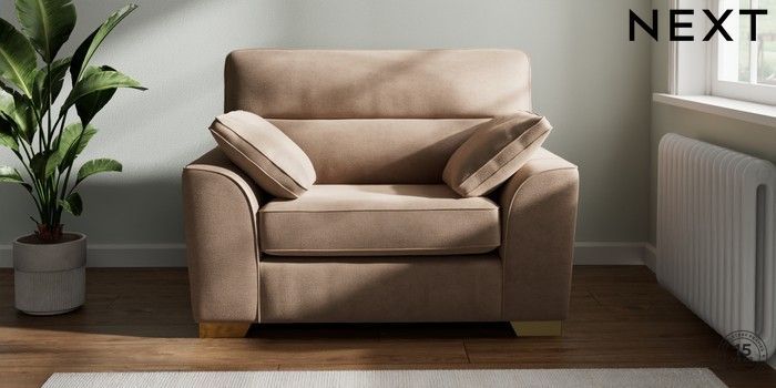 7.2.10 Stamford Highback Snuggle Luxe Chenille Mid Natural Large Square Angle - Brushed Brass | Made Click here to use our website with more accessibility support, for example screen readers