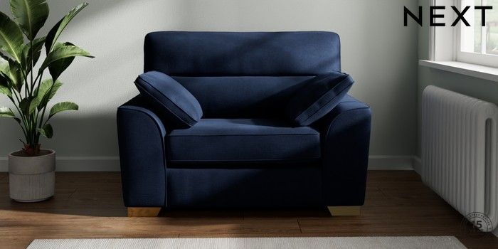 7.2.10 Stamford Highback Snuggle Luxe Chenille Navy Blue Large Square Angle - Brushed Brass | Made Click here to use our website with more accessibility support, for example screen readers