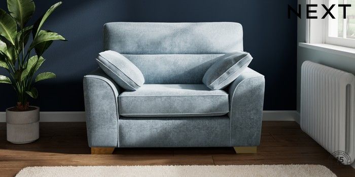 7.2.10 Stamford Highback Snuggle Plush Chenille Light Blue Large Square Angle - Brushed Brass | Made Click here to use our website with more accessibility support, for example screen readers