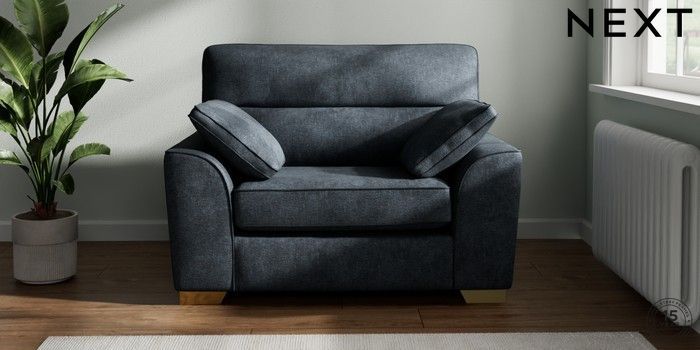 7.2.10 Stamford Highback Snuggle Plush Chenille Slate Blue Large Square Angle - Brushed Brass | Made Click here to use our website with more accessibility support, for example screen readers