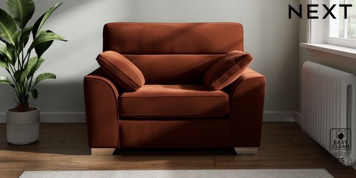 7.2.10 Stamford Highback Snuggle Plush Velvet Easy Clean Ginger Orange Large Square Angle - Chrome Metal | Made Click here to use our website with more accessibility support, for example screen readers
