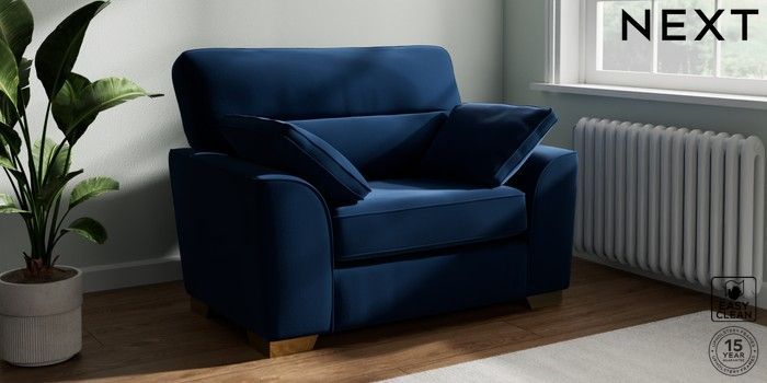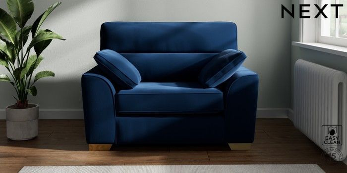 7.2.10 Stamford Highback Snuggle Plush Velvet Easy Clean Navy Blue Large Square Angle - Brushed Brass | Made Click here to use our website with more accessibility support, for example screen readers