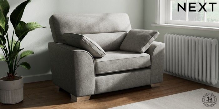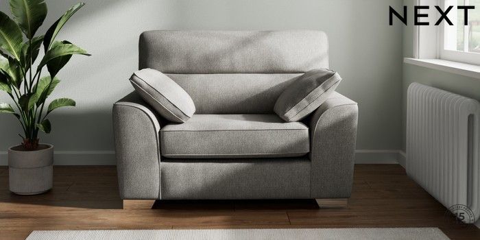 7.2.10 Stamford Highback Snuggle Tweedy Chenille Mid Grey Large Square Angle - Chrome Metal | Made Click here to use our website with more accessibility support, for example screen readers
