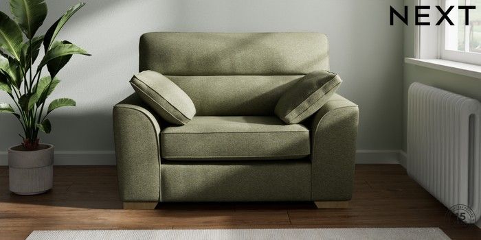 7.2.10 Stamford Highback Snuggle Tweedy Chenille Mid Moss Green Large Square Angle - Light | Made Click here to use our website with more accessibility support, for example screen readers