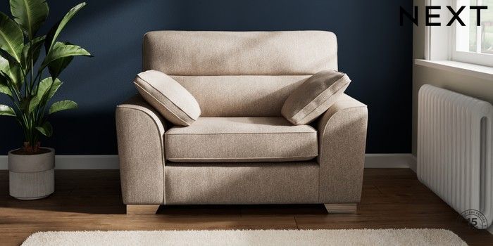 7.2.10 Stamford Highback Snuggle Tweedy Chenille Mid Natural Large Square Angle - Chrome Metal | Made Click here to use our website with more accessibility support, for example screen readers