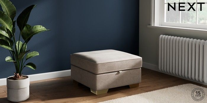 7.2.10 Stamford Highback Storage Footstool Boucle Chenille Light Natural Square Angle - Brushed Brass | Made Click here to use our website with more accessibility support, for example screen readers