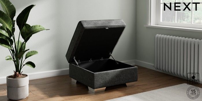 7.2.10 Stamford Highback Storage Footstool Boucle Weave Easy Clean Charcoal Grey Square Angle - Chrome Metal | Made Click here to use our website with more accessibility support, for example screen readers