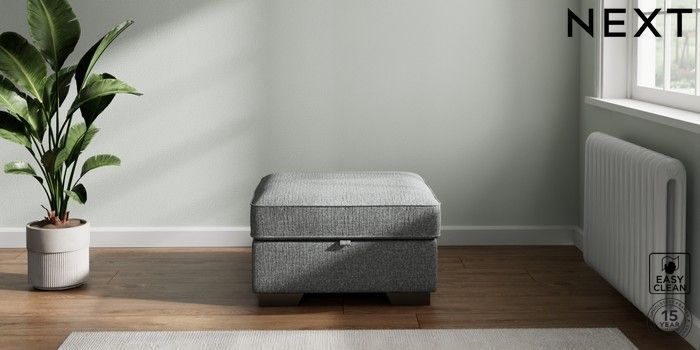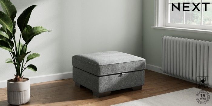 7.2.10 Stamford Highback Storage Footstool Chunky Boucle Easy Clean Mid Grey Square Angle - Gunmetal | Made Click here to use our website with more accessibility support, for example screen readers