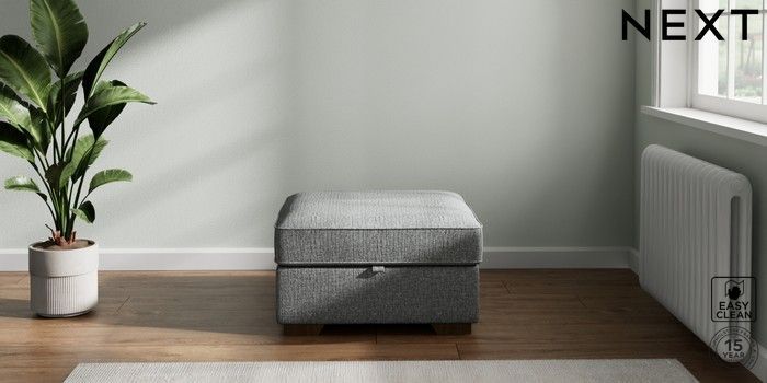 7.2.10 Stamford Highback Storage Footstool Chunky Boucle Easy Clean Mid Grey Square Angle - Mid | Made Click here to use our website with more accessibility support, for example screen readers