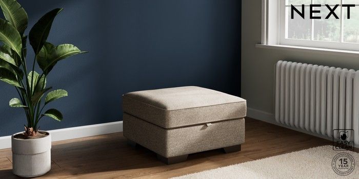 7.2.10 Stamford Highback Storage Footstool Chunky Boucle Easy Clean Mid Natural Square Angle - Gunmetal | Made Click here to use our website with more accessibility support, for example screen readers