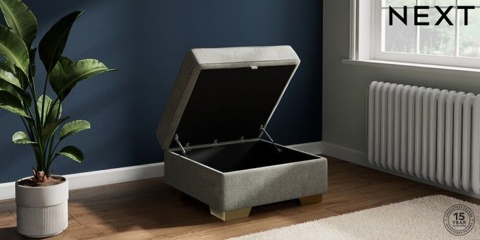 7.2.10 Stamford Highback Storage Footstool Chunky Chenille Light Grey Square Angle - Brushed Brass | Made Click here to use our website with more accessibility support, for example screen readers