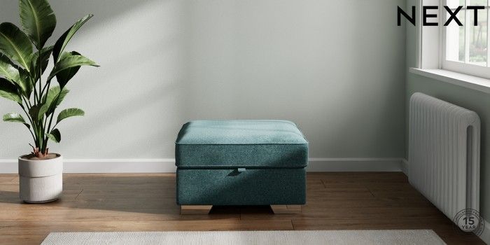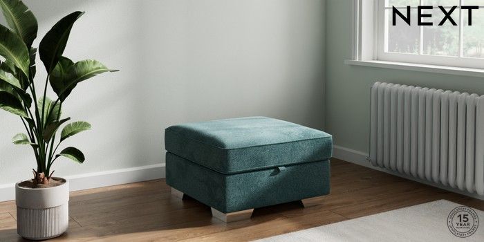 7.2.10 Stamford Highback Storage Footstool Chunky Chenille Mid Teal Green Square Angle - Chrome Metal | Made Click here to use our website with more accessibility support, for example screen readers