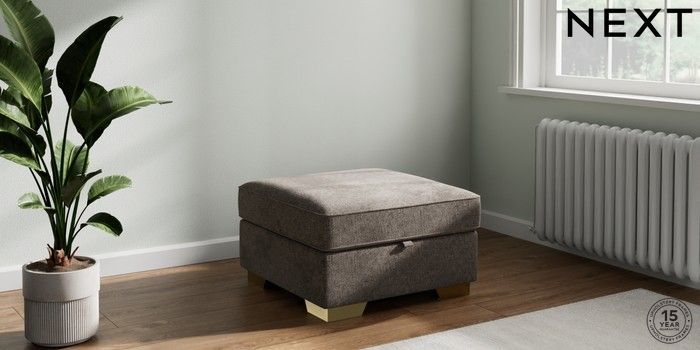 7.2.10 Stamford Highback Storage Footstool Chunky Chenille Mink Brown Square Angle - Brushed Brass | Made Click here to use our website with more accessibility support, for example screen readers