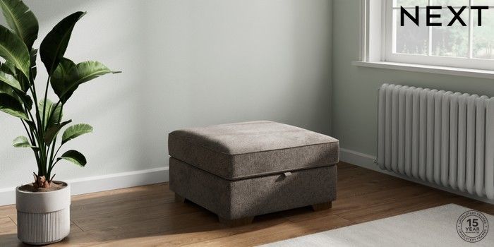 7.2.10 Stamford Highback Storage Footstool Chunky Chenille Mink Brown Square Angle - Mid | Made Click here to use our website with more accessibility support, for example screen readers