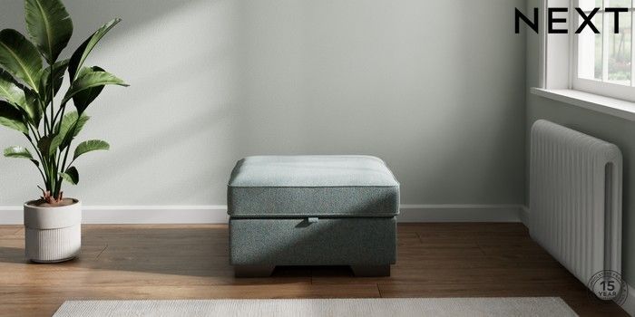 7.2.10 Stamford Highback Storage Footstool Chunky Marl Mid Blue Square Angle - Gunmetal | Made Click here to use our website with more accessibility support, for example screen readers