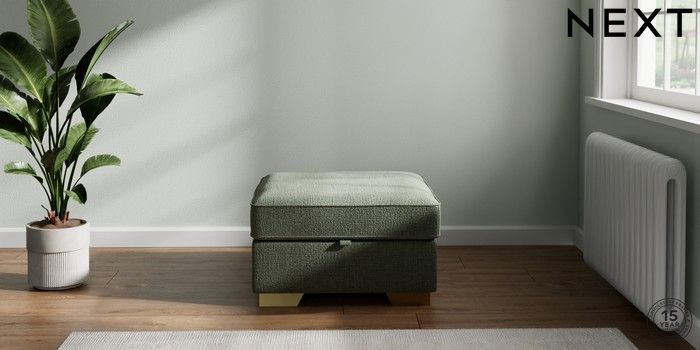 7.2.10 Stamford Highback Storage Footstool Chunky Texture Mid Forest Green Square Angle - Brushed Brass | Made Click here to use our website with more accessibility support, for example screen readers