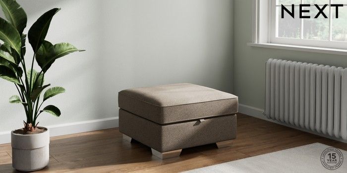 7.2.10 Stamford Highback Storage Footstool Chunky Weave Dark Natural Square Angle - Chrome Metal | Made Click here to use our website with more accessibility support, for example screen readers