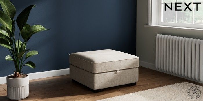 7.2.10 Stamford Highback Storage Footstool Chunky Weave Mid Natural Square Angle - Dark | Made Click here to use our website with more accessibility support, for example screen readers