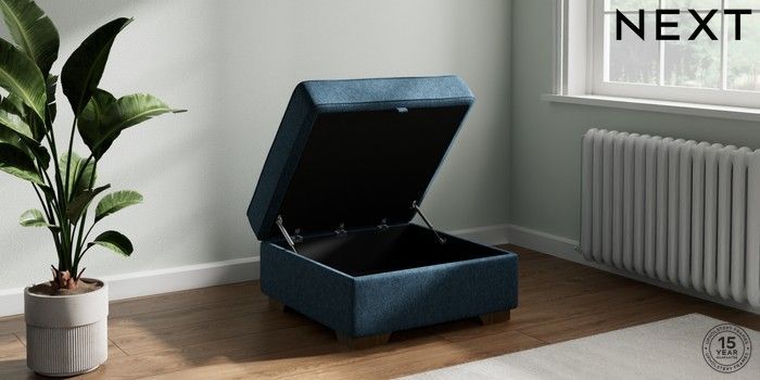 7.2.10 Stamford Highback Storage Footstool Cotswold Chenille Dark Blue Square Angle - Mid | Made Click here to use our website with more accessibility support, for example screen readers