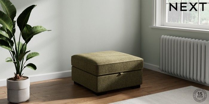 7.2.10 Stamford Highback Storage Footstool Cotswold Chenille Dark Green Square Angle - Dark | Made Click here to use our website with more accessibility support, for example screen readers