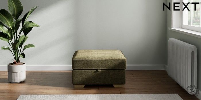 7.2.10 Stamford Highback Storage Footstool Cotswold Chenille Dark Green Square Angle - Light | Made Click here to use our website with more accessibility support, for example screen readers