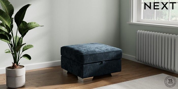 7.2.10 Stamford Highback Storage Footstool Distressed Velour Midnight Blue Square Angle - Chrome Metal | Made Click here to use our website with more accessibility support, for example screen readers