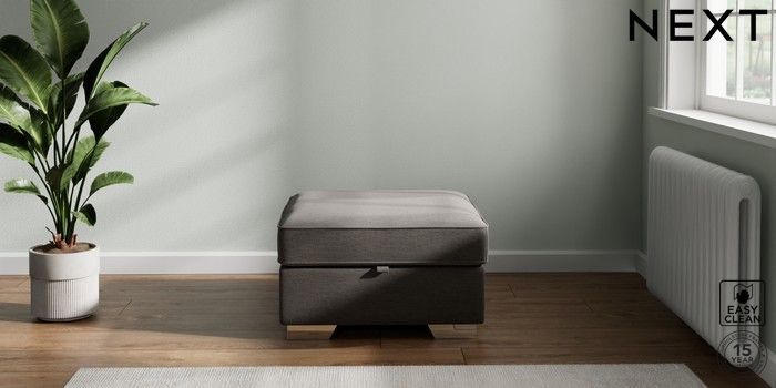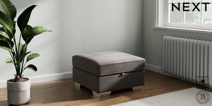 7.2.10 Stamford Highback Storage Footstool Fine Chenille Easy Clean Dark Smoke Grey Square Angle - Chrome Metal | Made Click here to use our website with more accessibility support, for example screen readers