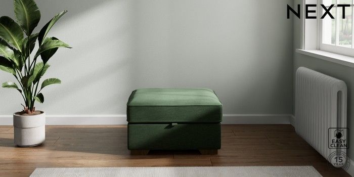 7.2.10 Stamford Highback Storage Footstool Fine Chenille Easy Clean Mid Khaki Green Square Angle - Mid | Made Click here to use our website with more accessibility support, for example screen readers