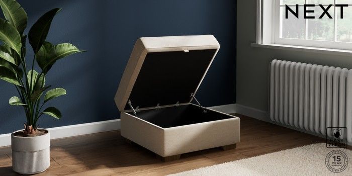 7.2.10 Stamford Highback Storage Footstool Fine Chenille Easy Clean Oyster Square Angle - Mid | Made Click here to use our website with more accessibility support, for example screen readers