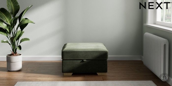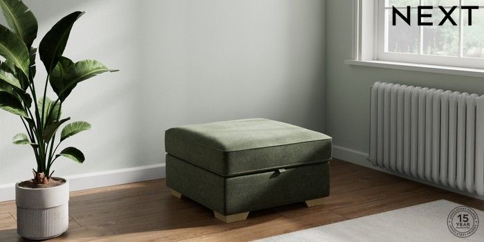 7.2.10 Stamford Highback Storage Footstool Luxe Chenille Mid Green Square Angle - Light | Made Click here to use our website with more accessibility support, for example screen readers