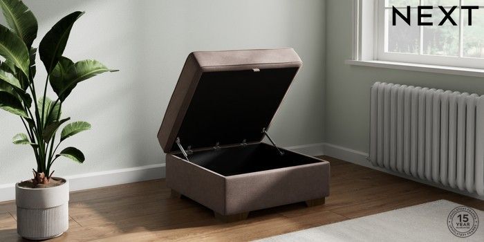 7.2.10 Stamford Highback Storage Footstool Luxe Chenille Mink Brown Square Angle - Mid | Made Click here to use our website with more accessibility support, for example screen readers