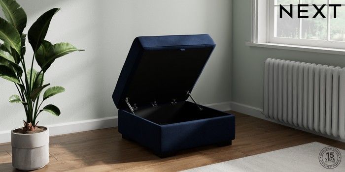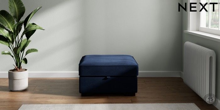 7.2.10 Stamford Highback Storage Footstool Luxe Chenille Navy Blue Square Angle - Dark | Made Click here to use our website with more accessibility support, for example screen readers