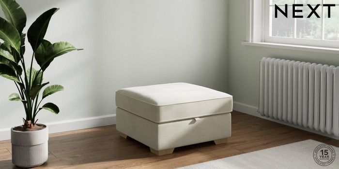 7.2.10 Stamford Highback Storage Footstool Luxe Chenille Oyster Square Angle - Light | Made Click here to use our website with more accessibility support, for example screen readers