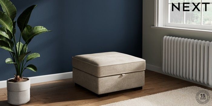 7.2.10 Stamford Highback Storage Footstool Plush Chenille Light Natural Square Angle - Dark | Made Click here to use our website with more accessibility support, for example screen readers