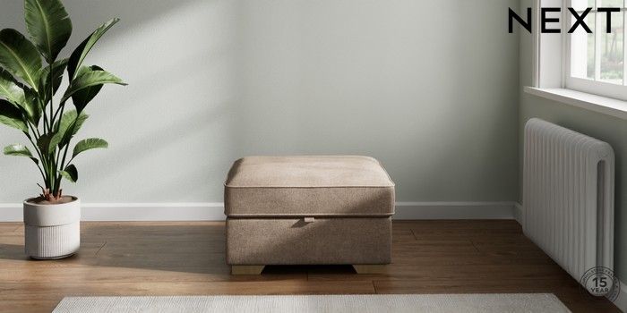 7.2.10 Stamford Highback Storage Footstool Plush Chenille Mid Natural Square Angle - Light | Made Click here to use our website with more accessibility support, for example screen readers