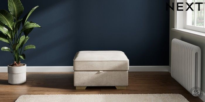 7.2.10 Stamford Highback Storage Footstool Plush Chenille Oyster Square Angle - Light | Made Click here to use our website with more accessibility support, for example screen readers