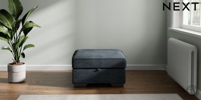 7.2.10 Stamford Highback Storage Footstool Plush Chenille Slate Blue Square Angle - Gunmetal | Made Click here to use our website with more accessibility support, for example screen readers
