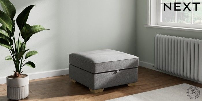 7.2.10 Stamford Highback Storage Footstool Studio Chenille Mid Grey Square Angle - Light | Made Click here to use our website with more accessibility support, for example screen readers